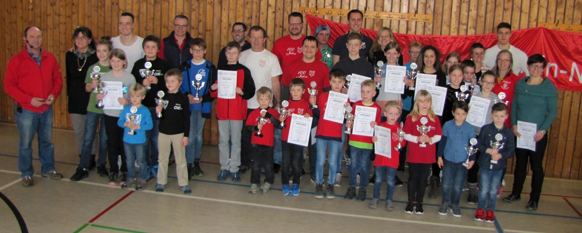 Es galt bei den Ehrungen die Präsente an die Teilnehmer des Sparkassen-Laufcups 2017 zu überreichen, die an einer Mindestanzahl an Läufen des SparkassenLaufcups gestartet waren. Am Sparkassen-Laufcup 2017 nahmen insgesamt 1.757 (Vorjahr 1.617) Läuferinnen und Läufer teil. Dies waren wieder mehr als die Jahre zuvor. Bei den Jugendlichen und Erwachsenen konnten für das Jahr 2017 insgesamt 37 Läuferinnen und Läufer ausgezeichnet werden, die das Gesamtziel erreicht hatten. Über Pokale freuten sich insgesamt 40 erfolgreiche Kinder. Die Präsente wurden von Thomas Löffler, Leiter des Vertriebsmanagements bei der Sparkasse Rhein-Nahe, und dem Vorstand des Kreises überreicht.